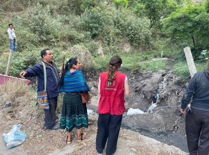 “A week ago PBI accompanied the Peaceful Resistance of the Poqomam People in Chinautla. They received a visit from the Ministry of Environment to review 7 water sources that are contaminated, mainly due to the activities of sand mining companies in the territory that operate with expired licenses.
