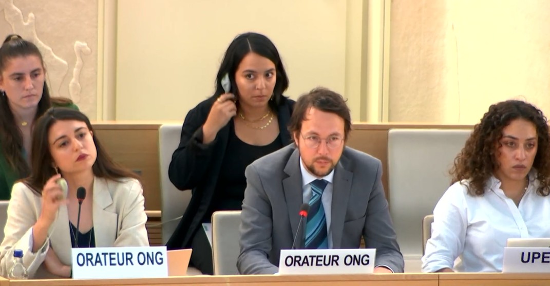 Video still: Yannick Wild at UN Human Rights Council in Geneva.