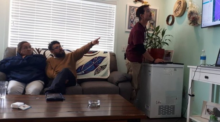 Photo: PBI-Colombia accompanied environmental defender Jani Silva and allies on Gitanyow territory in June 2025 receive briefing on the potential impacts of the PRGT pipeline.