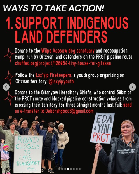 When the British Columbia government announced on June 6, 2025, that it would allow the construction of PRGT, Watakhayetsxw stated: “We’ll continue to fight to protect our territory (Lax’yip) with all actions needed, in the courts and on the ground. From August to November 2024, we denied access for PRGT pipeline construction and we’ll be continuing our efforts to ensure no construction happens on our territory.”