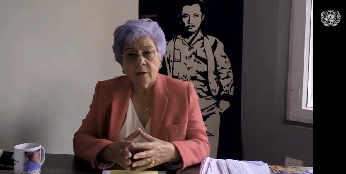 Video still (starting at the 50:51 mark) of Berta Oliva from COFADEH.
