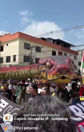 The video posted by COPINH included images of a massive sculpture of a cobra.