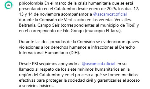 On November 22, the Peace Brigades International-Colombia Project posted on social media: