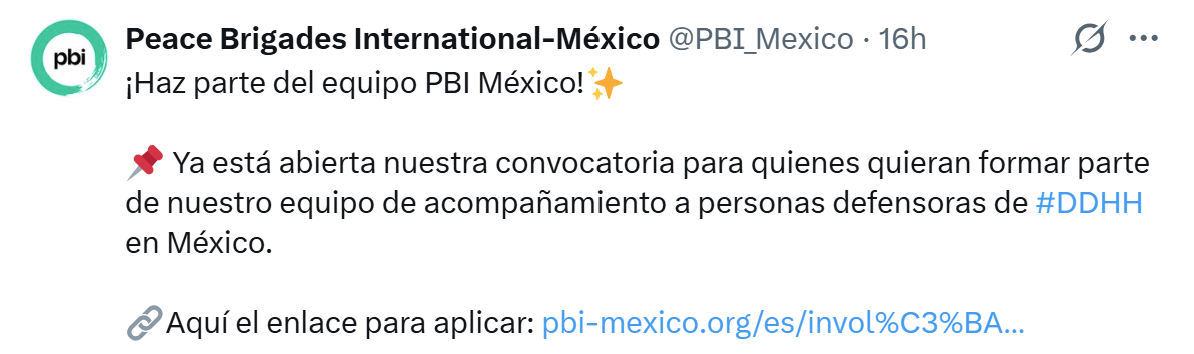 Our call is now open for those who want to be part of our accompaniment team for #HumanRights defenders in Mexico.