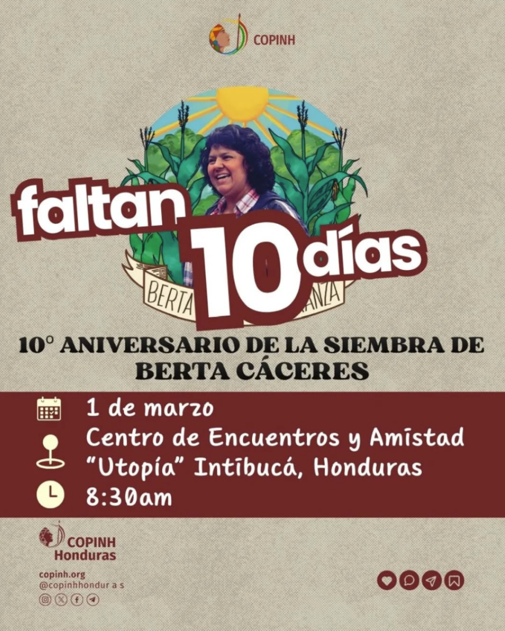 COPINH is currently planning activities in commemoration of the 10th anniversary of “the sowing” of Berta Caceres.