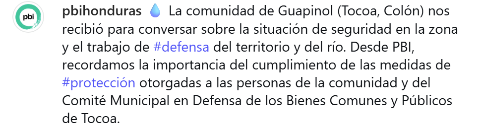On March 13, the Peace Brigades International-Honduras Project posted on social media: