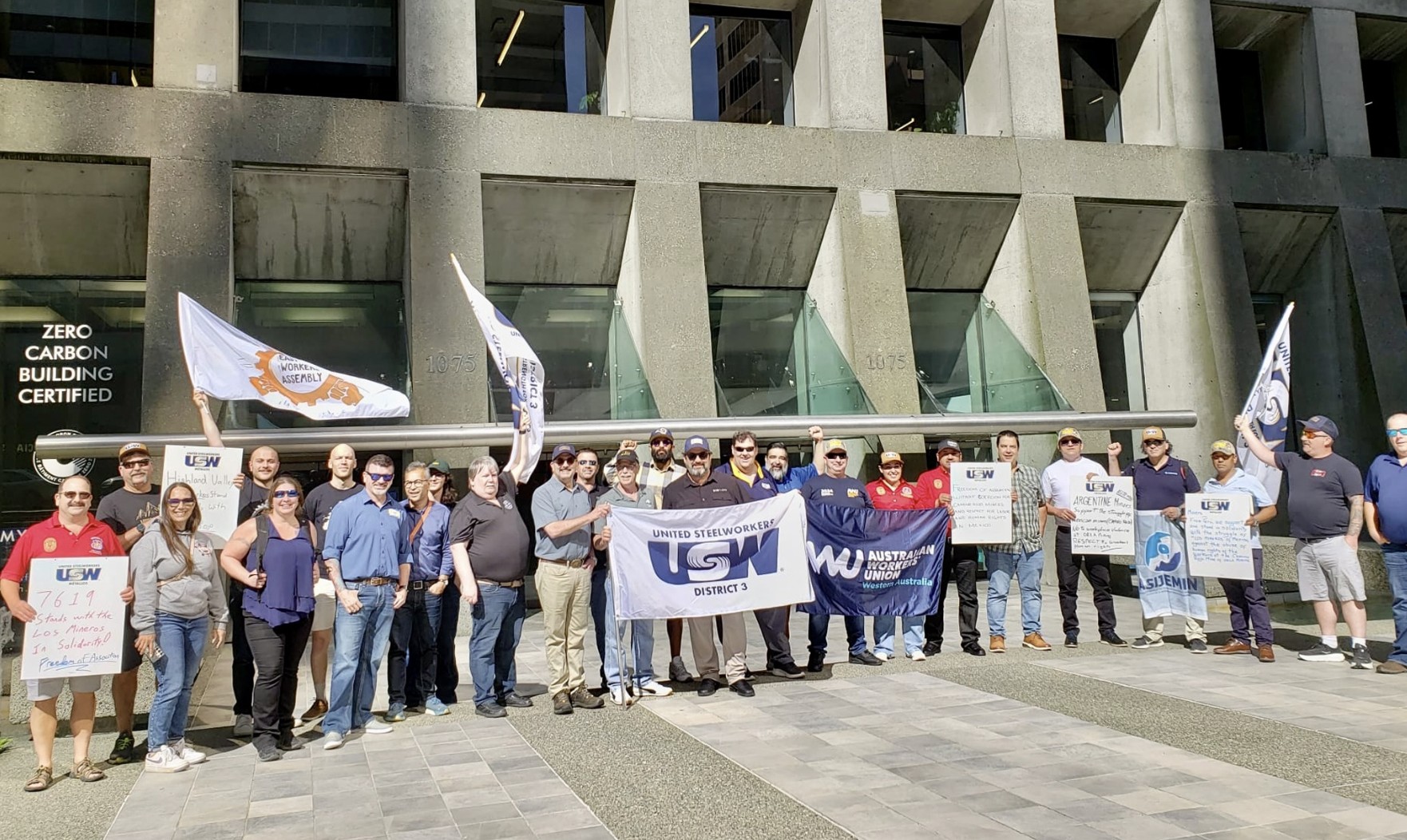 Photo: On June 10, 2025, Canadian trade unionists rallied outside the offices of Vancouver mining corporation Orla Mining, owner of the Camino Rojo mine.