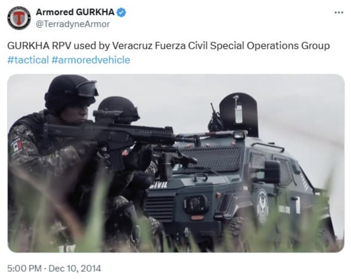 Terradyne has also posted on social media that it has sold its vehicles to the Nuevo Leon police, the Ministry of Public Security in Ciudad Guadalupe, Nuevo León, and the Saltillo Police Department – GROMS / SRT.