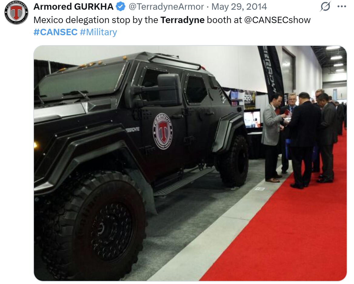 Terradyne has previously posted a tweet that suggests its vehicles have been used by the Civil Force in Veracruz and that a delegation from Mexico visited their booth at CANSEC.