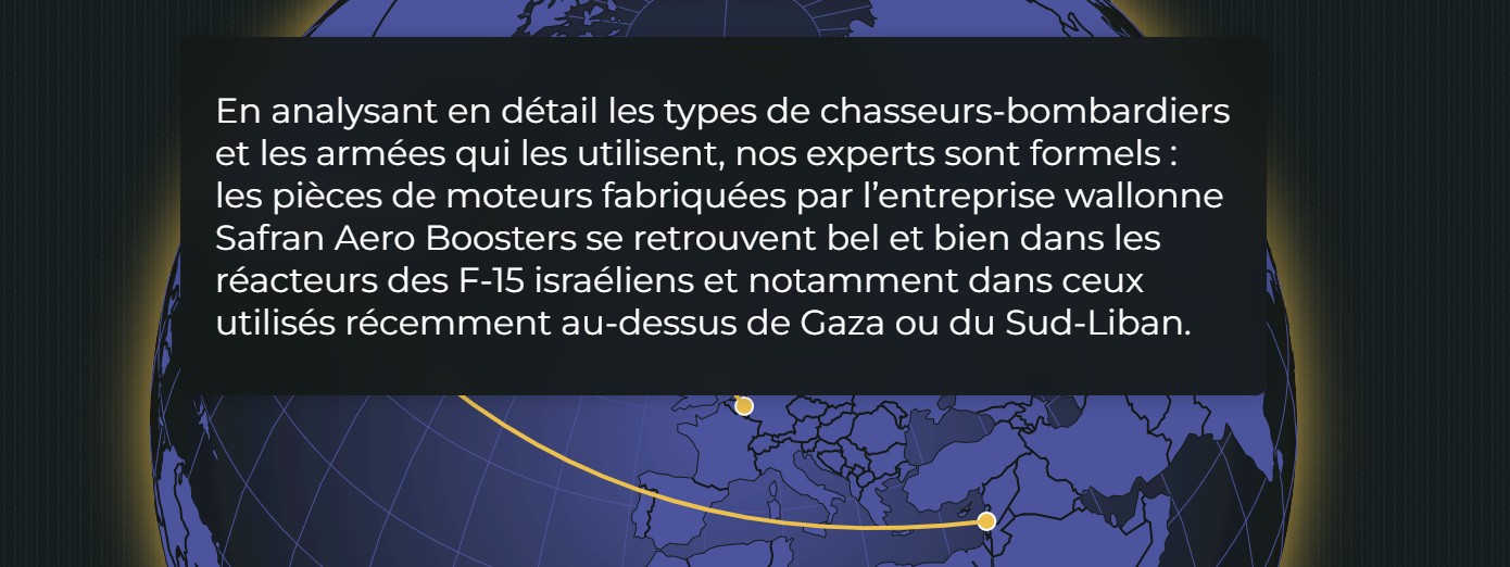 The Belgian news agency RTBF has also reported: “By analyzing in detail the types of fighter-bombers and the armies that use them, our experts are categorical: the engine parts manufactured by the Walloon company Safran Aero Boosters are indeed found in the reactors of Israeli F-15s and in particular in those used recently over Gaza or South Lebanon.”