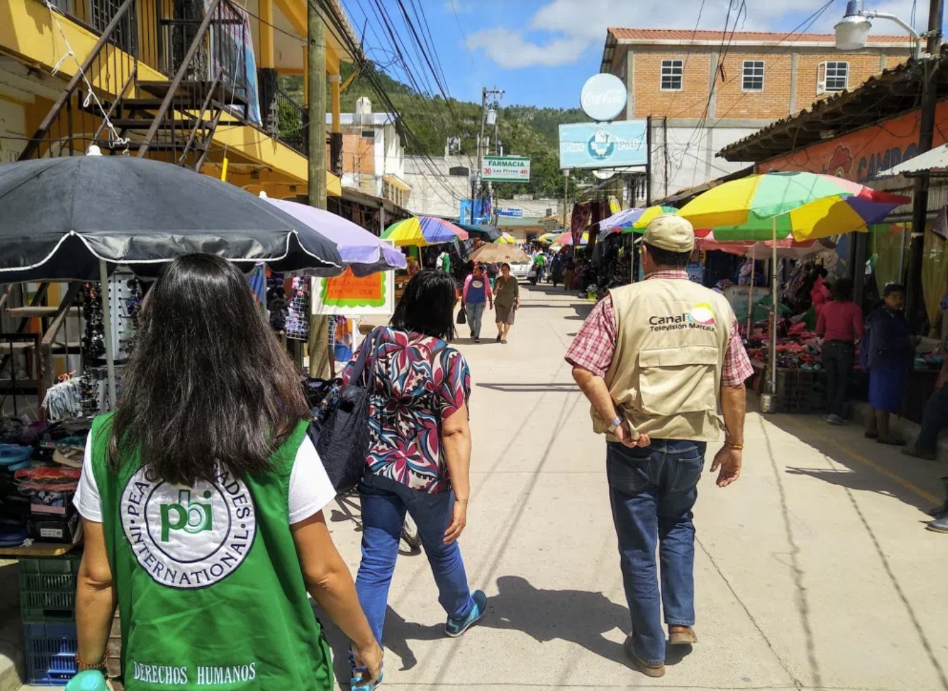 Photo by Instituto de Prensa y Libertad de Expresión. Dina Meza (centre) from the PBI-Honduras accompanied Association for Democracy and Human Rights in Honduras (ASOPODEHU).