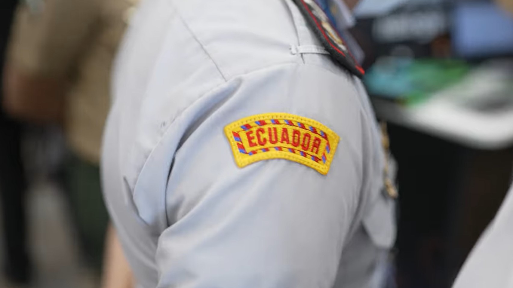 Video still: “CANSEC is Global” promotional video shows military arm patch. “We’ve had the Ecuadorean minister on our booth.”